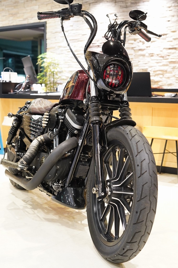 人気のアイアンがカスタム多数で入庫しました!社外マフラー、ラウンドエアクリーナー、ルーズバーハンドル、イージーライダース製シート、セブンティーツータンク、前後ショートフェンダー、LEDヘッドライト、ビキニカウル、フロントスポイラー、リア・ローダウンサスペンション、社外ウィンカー&テールランプ、ETC等付いています!!納車整備にてオイル一式・ブレーキフルード・スパークプラグは全車交換、その他消耗品も半分以上減っているものは交換してお渡し致します!!中古ハーレー専門店の当店ではシャーシダイナモや中部運輸局認証工場完備でカスタムから修理まで幅広く対応できるよう準備しております!また一部繰り上げ返済も可能な最長180回ローンも取り扱っていますのでお気軽にご相談下さい!!