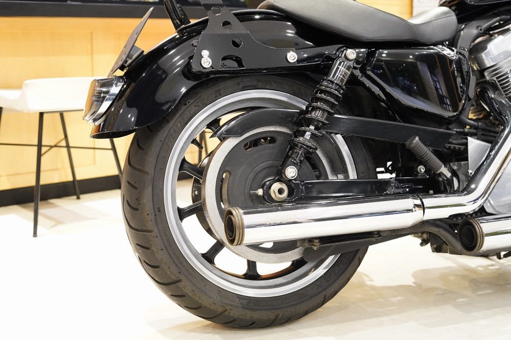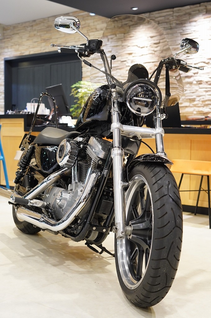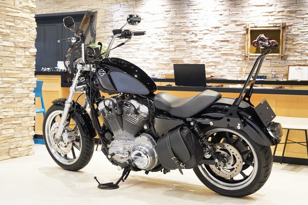 カスタム多数の883スーパーローです!社外マフラー、S&S製エアクリーナー、ECMチューニング、3.8ガロン・レガシーガスタンク、デタッチャブル・シーシーバー、ベビーエイプハンドル、LEDテールランプ、キジマ製スリムレバー、ETC等カスタム多数!納車整備にてオイル一式・ブレーキフルード・スパークプラグは全車交換、その他消耗品も半分以上減っているものは交換してお渡し致します!!中古ハーレー専門店の当店ではシャーシダイナモや中部運輸局認証工場完備でカスタムから修理まで幅広く対応できるよう準備しております!また一部繰り上げ返済も可能な最長180回ローンも取り扱っていますのでお気軽にご相談下さい!!