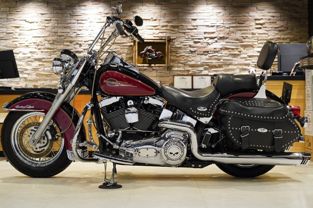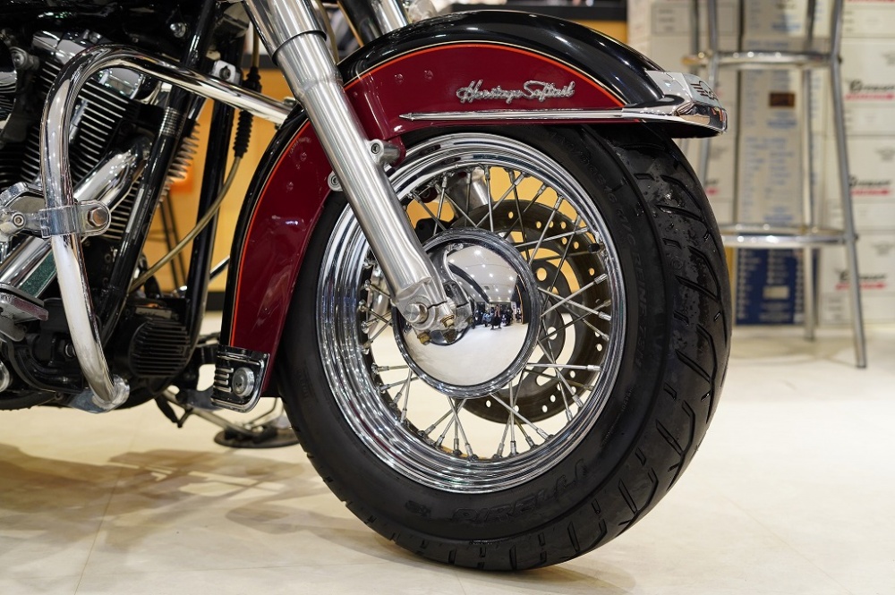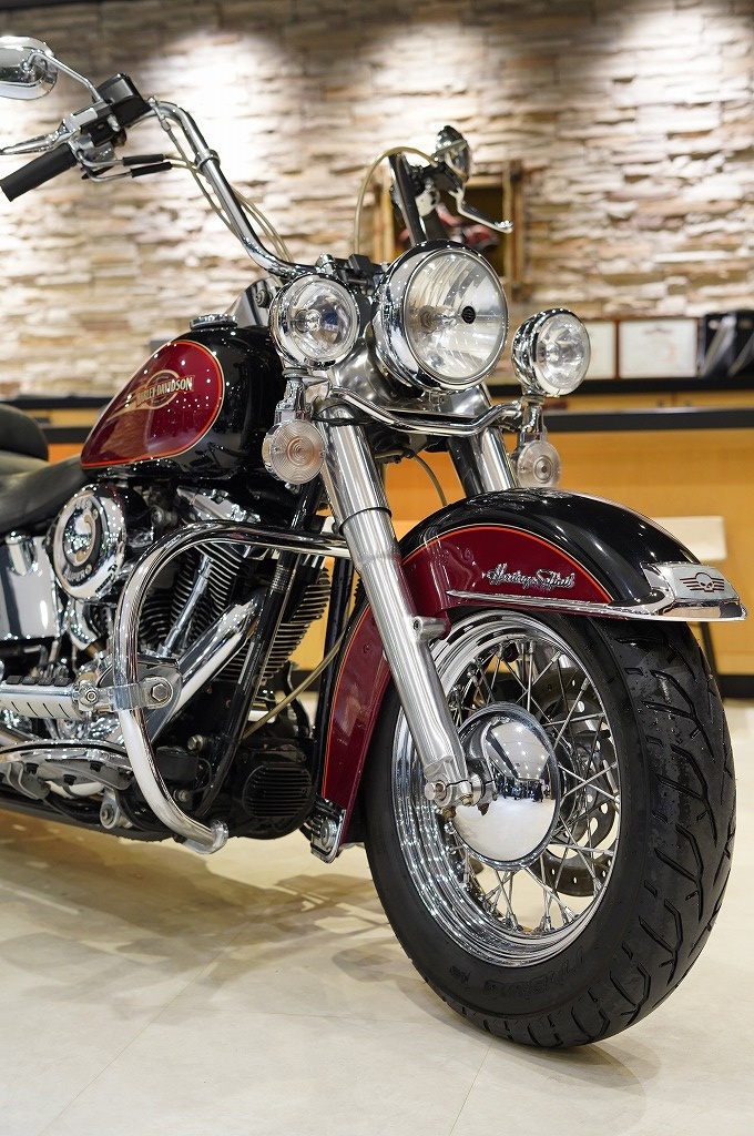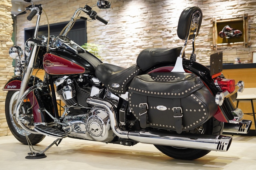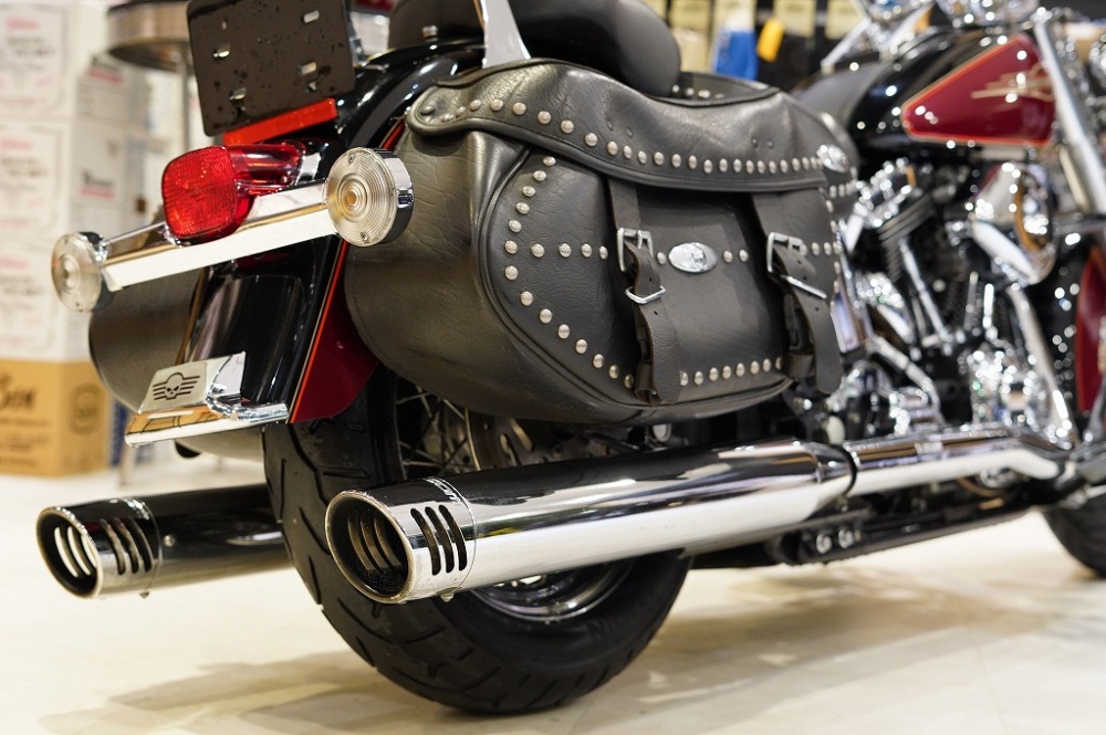 貴重なキャブ車のヘリテイジが入荷しました!左右振り分け社外マフラー、HSR42キャブレター、S&S製エアクリーナー、ツインテック製モジュール、14インチエイプハンドル、リア・ロワリングキット、ETC、純正オプションのスカルフロアボード&ブレーキペダルパッド&シフトペグ&タイマーカバー&ダービーカバー、クロームスイッチハウジング等カスタム多数!!納車整備にてオイル一式・ブレーキフルード・スパークプラグは全車交換、その他消耗品も半分以上減っているものは交換してお渡し致します!!中古ハーレー専門店の当店ではシャーシダイナモや中部運輸局認証工場完備でカスタムから修理まで幅広く対応できるよう準備しております!また一部繰り上げ返済も可能な最長180回ローンも取り扱っていますのでお気軽にご相談下さい!!