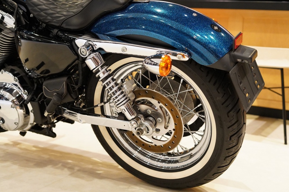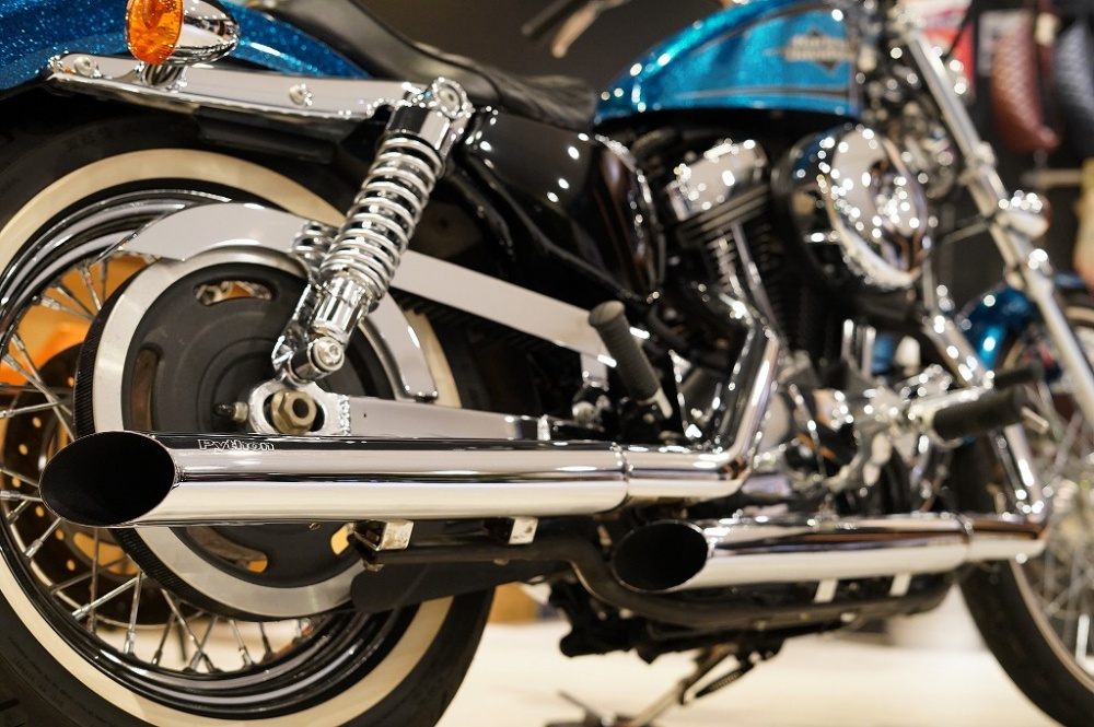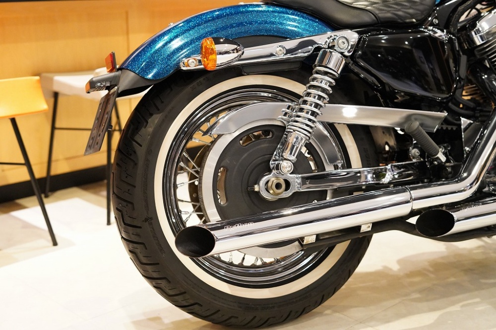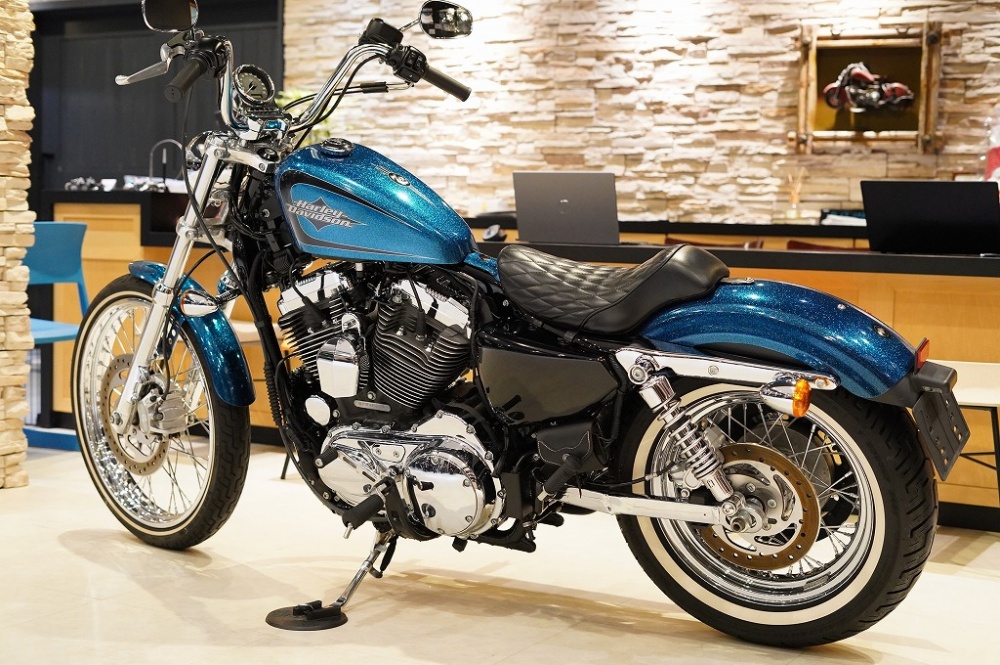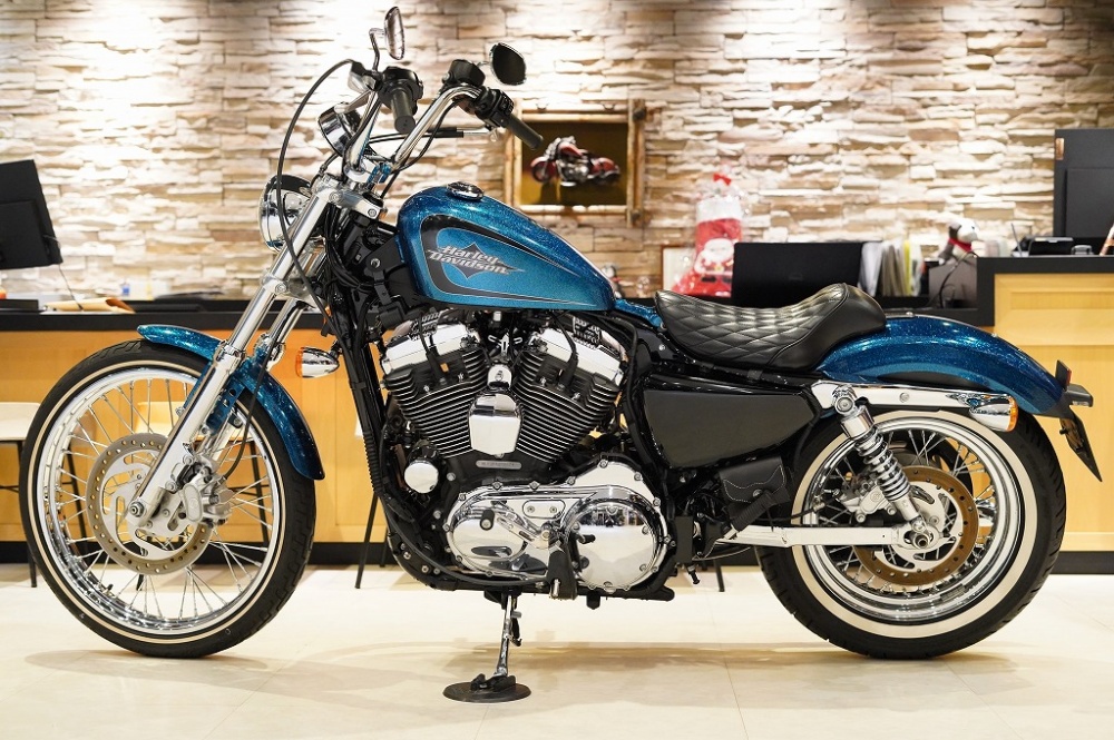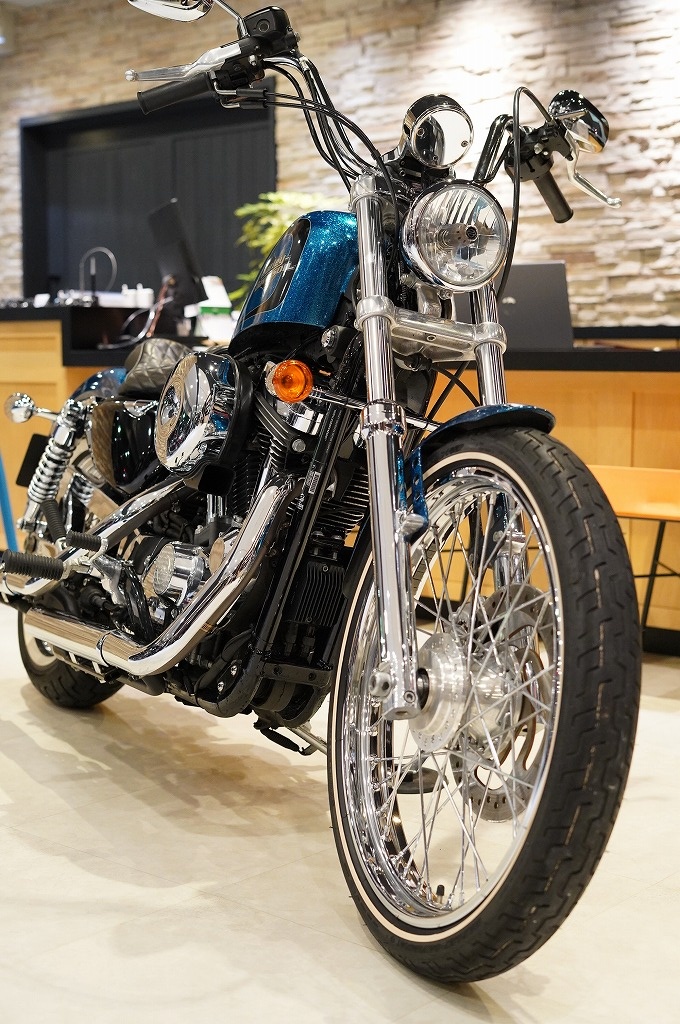 希少カラーのXL1200Vです!社外マフラー、キジマ製ミッドコントロールキット、純正オプションのクローム・フォークスライダー&スイングアーム&ベルガード、社外シングルシート、ターンシグナルエクステンションキャップ、パッセンジャーペグ、ETC等付いています!初度登録から10年以内の車両は2年保証!!納車整備にてオイル一式・ブレーキフルード・スパークプラグは全車交換、その他消耗品も半分以上減っているものは交換してお渡し致します!!中古ハーレー専門店の当店ではシャーシダイナモや中部運輸局認証工場完備でカスタムから修理まで幅広く対応できるよう準備しております!また一部繰り上げ返済も可能な最長180回ローンも取り扱っていますのでお気軽にご相談下さい!!