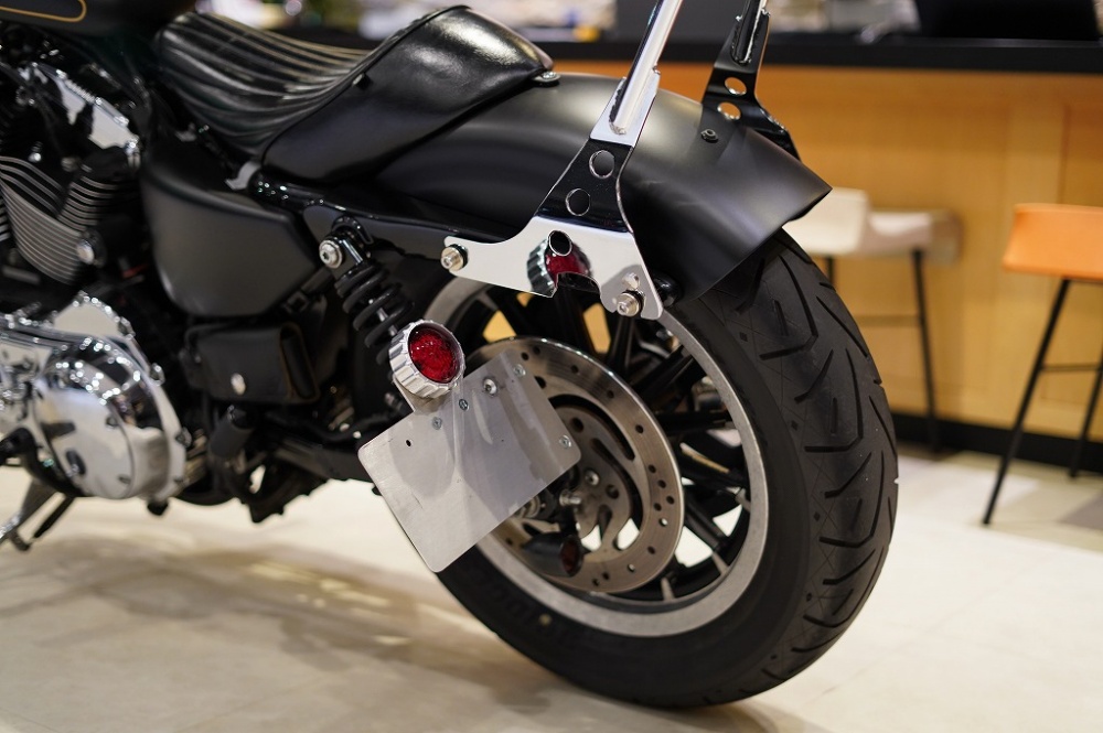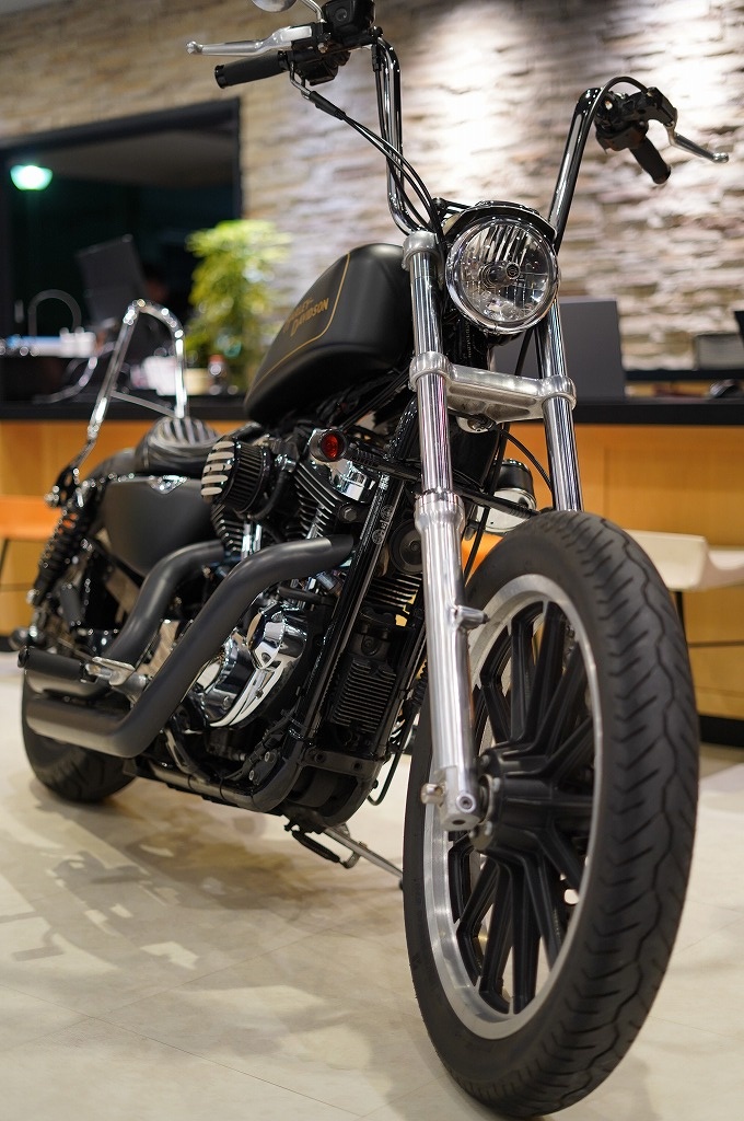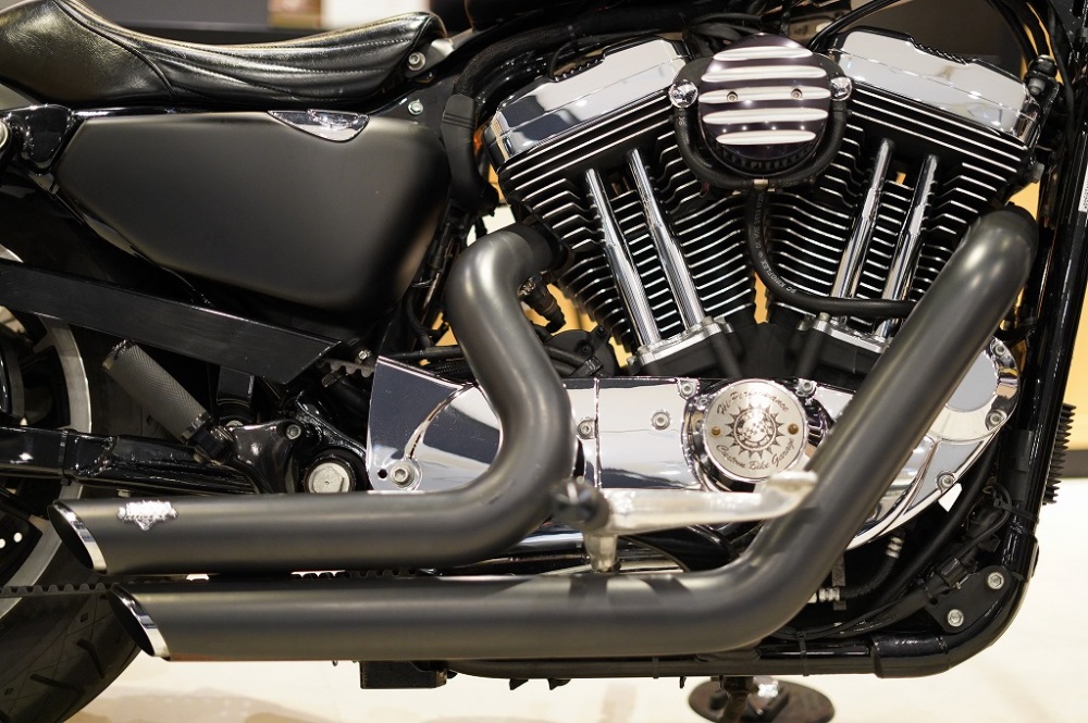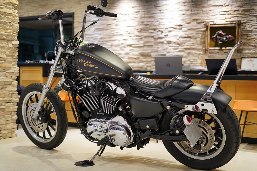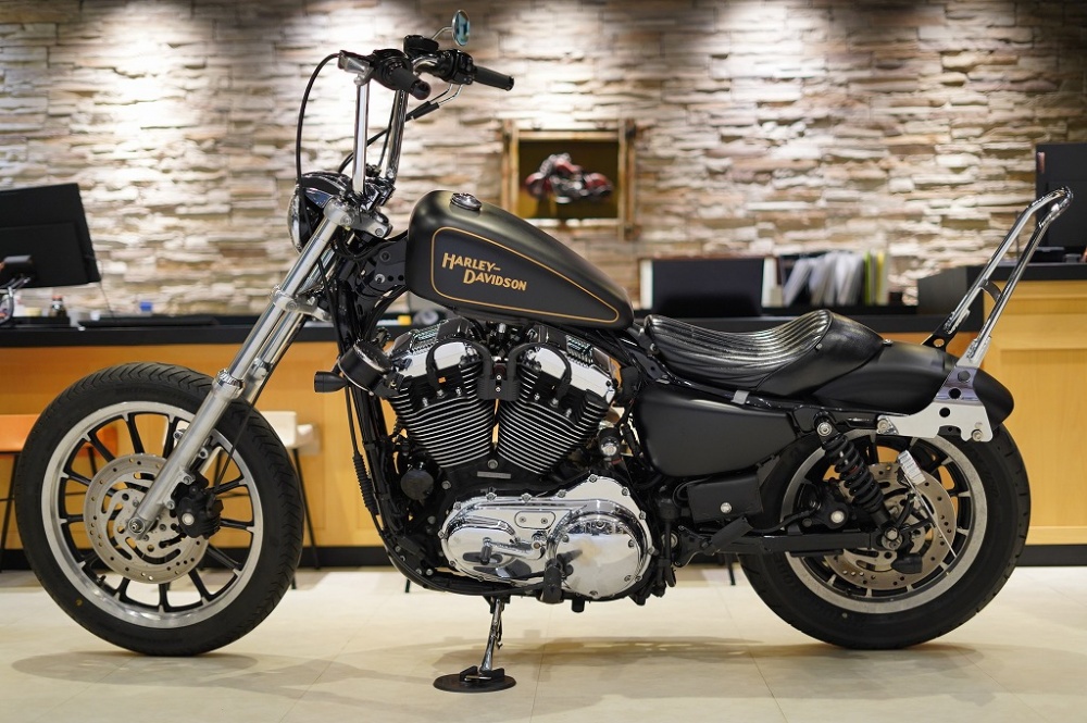 カスタム多数の1200ローです!社外マフラー、社外エアクリーナー、カスタムペイント、ショートリアフェンダー、社外ガソリンタンク、タンクアップ&コイル移設&メーターサイドマウント&タンク下配線処理、北米仕様プーリー、12インチナローエイプハンドル!納車整備にてオイル一式・ブレーキフルード・スパークプラグは全車交換、その他消耗品も半分以上減っているものは交換してお渡し致します!!中古ハーレー専門店の当店ではシャーシダイナモや中部運輸局認証工場完備でカスタムから修理まで幅広く対応できるよう準備しております!また一部繰り上げ返済も可能な最長180回ローンも取り扱っていますのでお気軽にご相談下さい!!