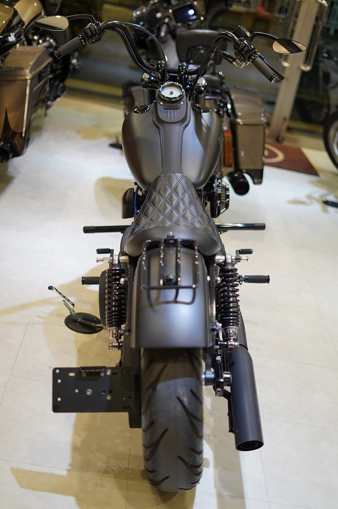 カスタム多数のストリートボブです!社外マフラー、PM製エアクリーナー、ECMチューニング、フロントフォーク&トリプルツリーブラック・パウダーコート、RSD製アッパーフォークカバー&ロッカーカバー、ikon製リアサスペンション、BUNGKING製クラッシュバー、ケラーマン製ウィンカー&テールランプ、キジマ製サイドナンバーキット、テイラー製プラグコード、PM製フットペグ&シフトペグ&ブレーキアーム&シフトアーム、ETC等付いています!!納車整備にてオイル一式・ブレーキフルード・スパークプラグは全車交換、その他消耗品も半分以上減っているものは交換してお渡し致します!!中古ハーレー専門店の当店ではシャーシダイナモや中部運輸局認証工場完備でカスタムから修理まで幅広く対応できるよう準備しております!また一部繰り上げ返済も可能な最長180回ローンも取り扱っていますのでお気軽にご相談下さい!!