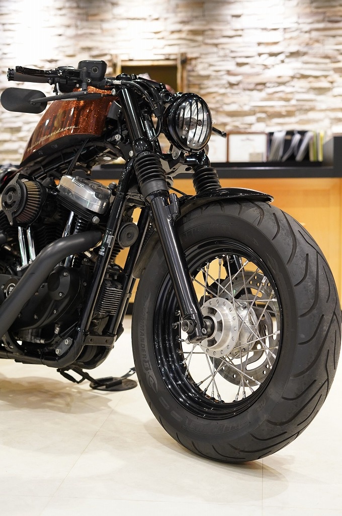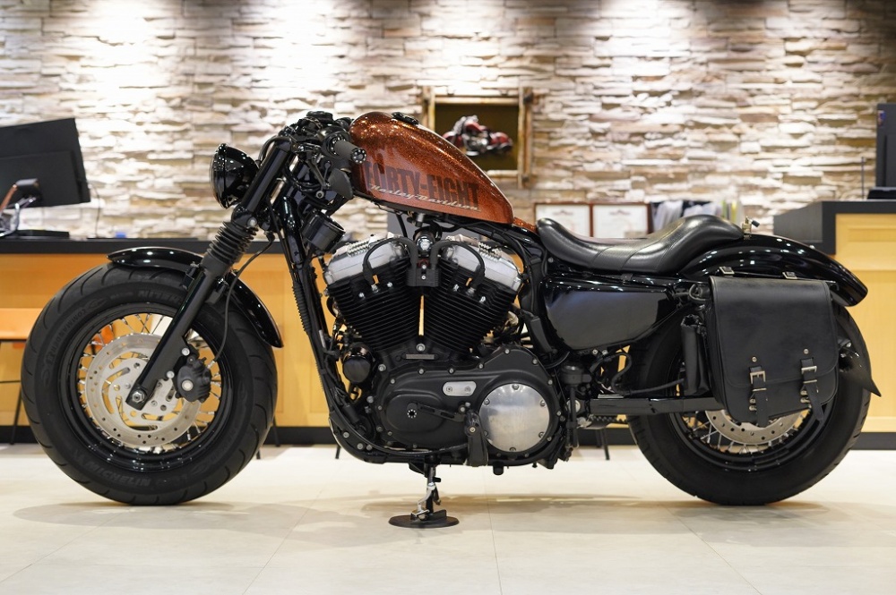 カスタム多数のフォーティーエイトです!社外マフラー、RSD製エアクリーナー、トランプ製シート、ドラッグバーハンドル、タンクアップ&コイル移設&タンク下配線処理、フォークカバーキット、RSD製フロントプーリーカバー、サイドナンバーキット、メーターサイドマウント、CULTWERK製ベルトガード、キジマ製ハイミッドコントロールキット、RSD製調整式レバー&グリップ、ターンシグナルエクステンションキャップ、ケラーマン製ウィンカー等変わっています!納車整備にてオイル一式・ブレーキフルード・スパークプラグは全車交換、その他消耗品も半分以上減っているものは交換してお渡し致します!中古ハーレー専門店の当店ではシャーシダイナモや中部運輸局認証工場完備でカスタムから修理まで幅広く対応できるよう準備しております!また一部繰り上げ返済も可能な最長180回ローンも取り扱っていますのでお気軽にご相談下さい!